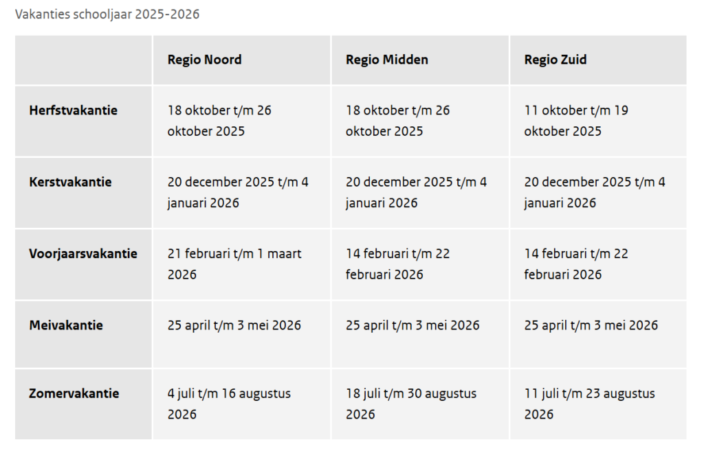 Onderstaande data zijn adviesdata en kunnen per school verschillen.